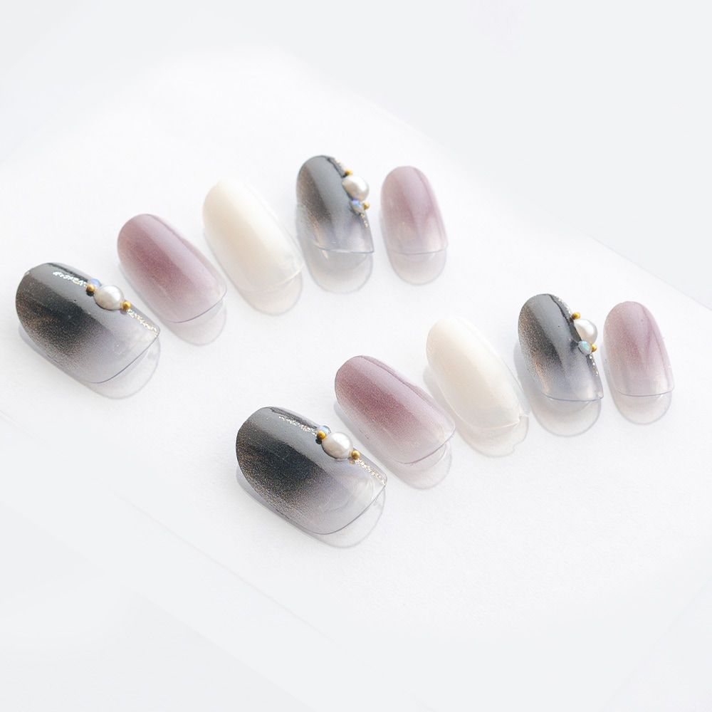 グレージュグラデ。大きなパールとラメライン(K04009-Q-CNGJ) スクエアショート