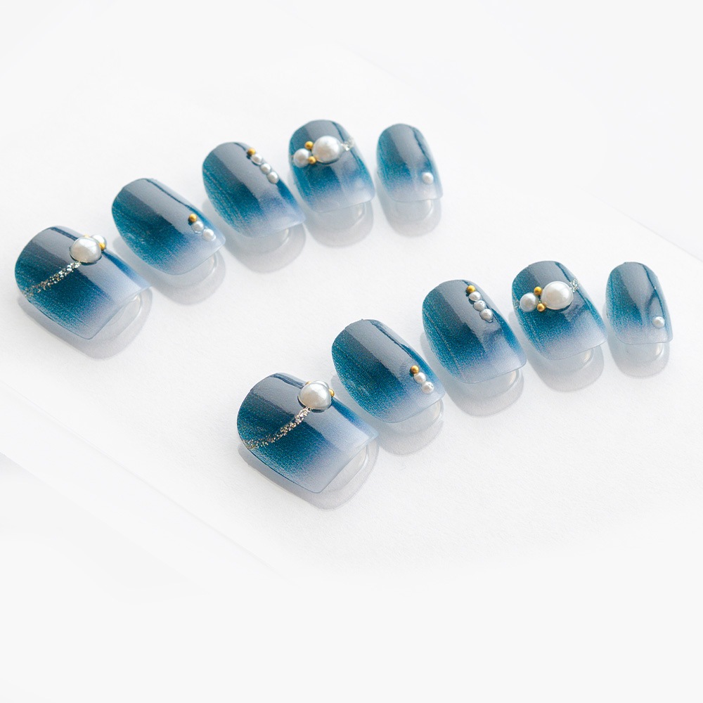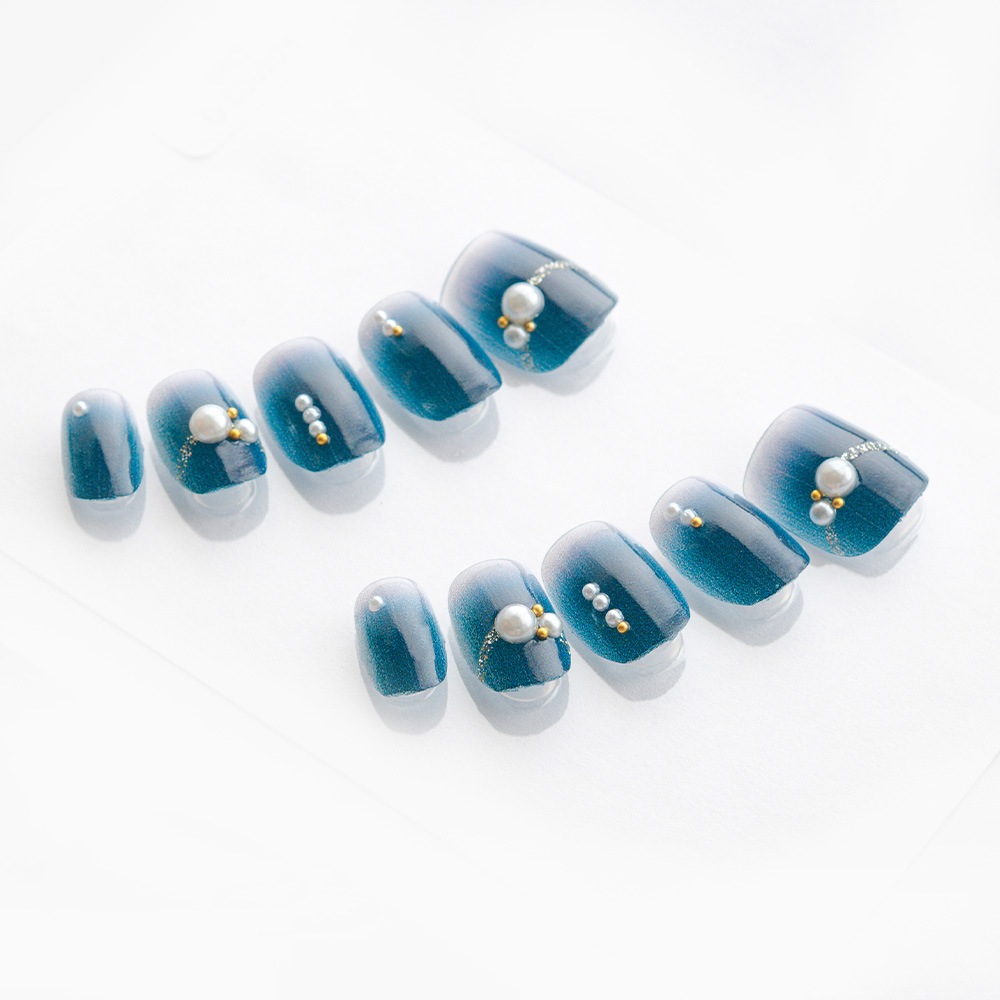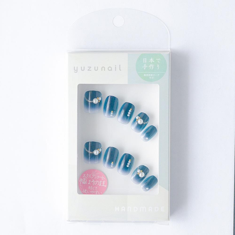 ネイビーとクリアのグラデに上品ラメとパール(K07007-Q-CNB) スクエアショート