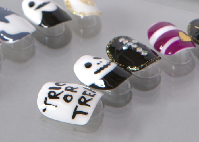 ゆずネイル|ネイルチップ ブラック系 秋 ハロウィン ポップ・個性的(E08009-Q-C)