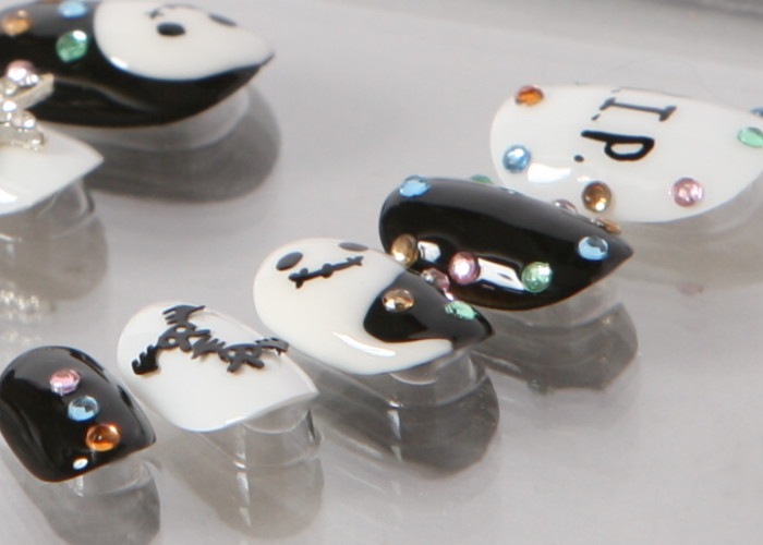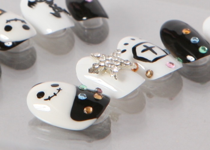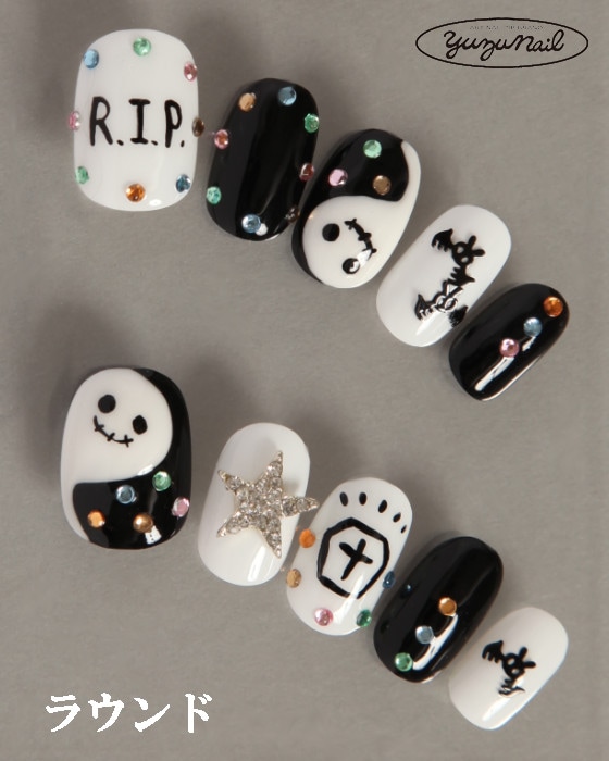 ゆずネイル|ネイルチップ ブラック系 秋 ハロウィン ポップ・個性的(E08009-Q-C)