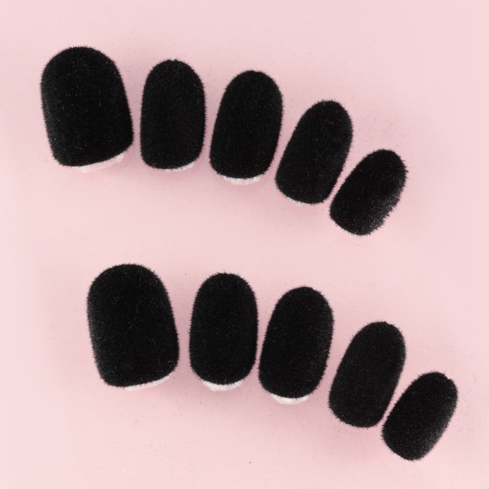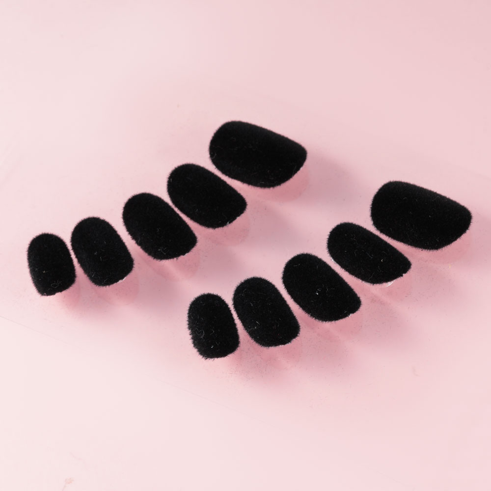 (形)ラウンド(デザイン)温かみのあるふわふわベロアネイル。トップコート:ベロアの質感がオシャレ。ふわふわした見た目と質感です。ご利用シーン:ハロウィン 。