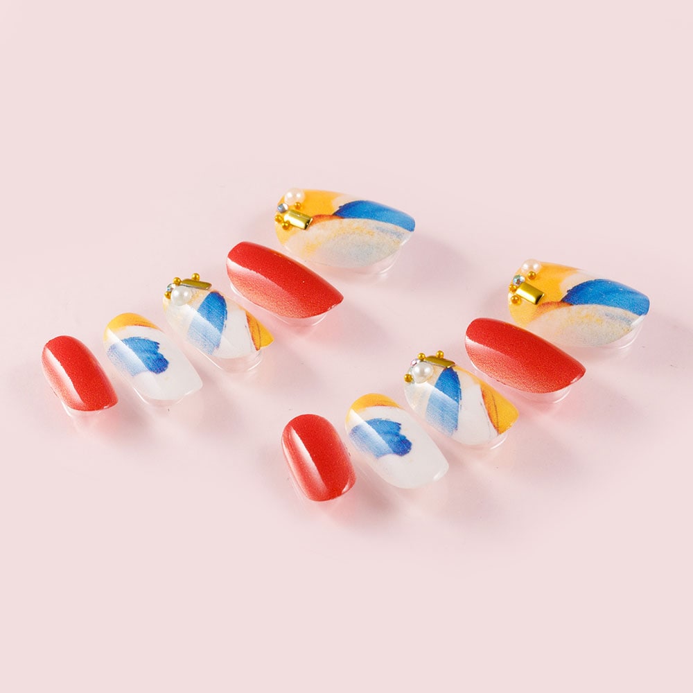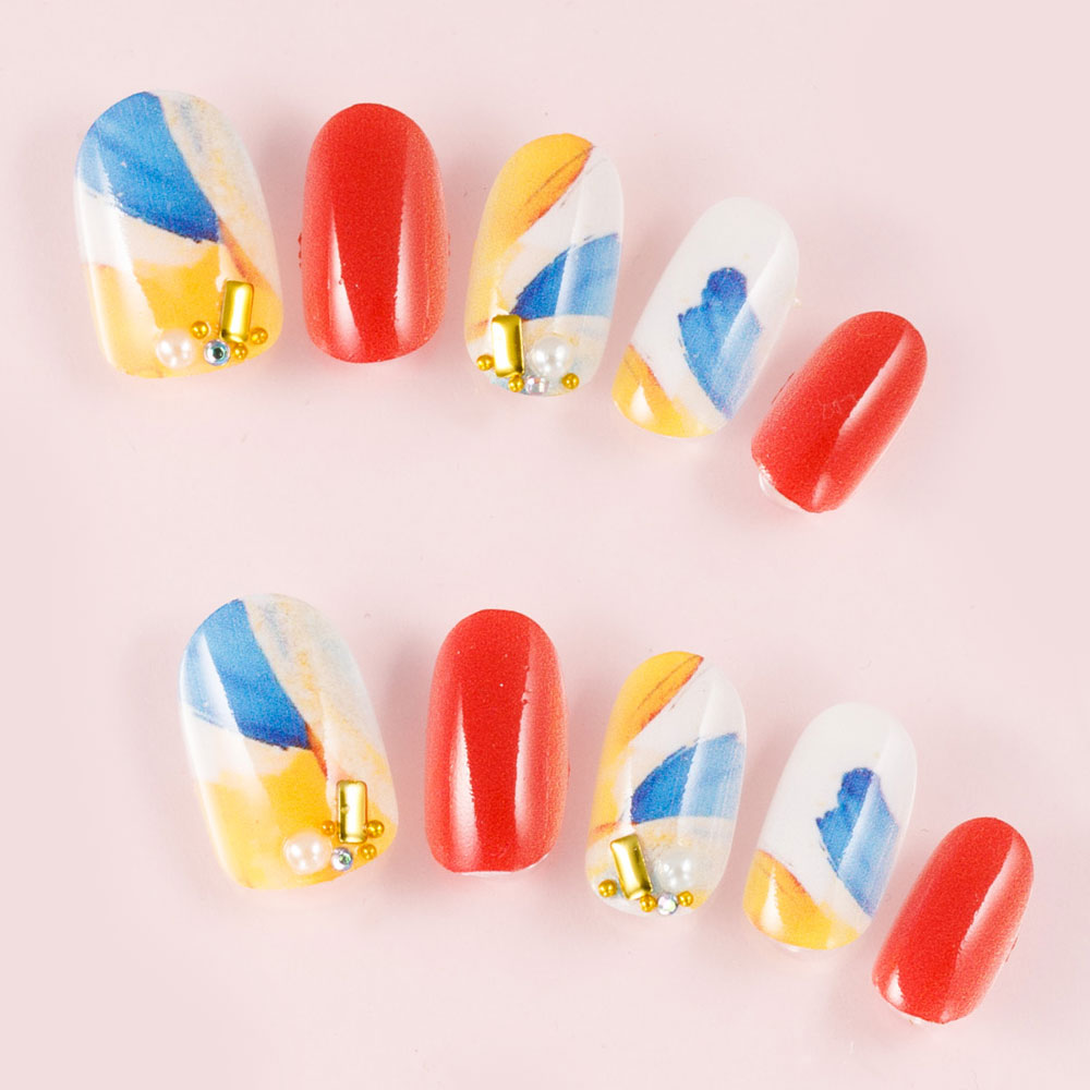 塗りかけフレンチ。ネイビーとオレンジとパーチメント。(K04003-Q-C) スクエアショート