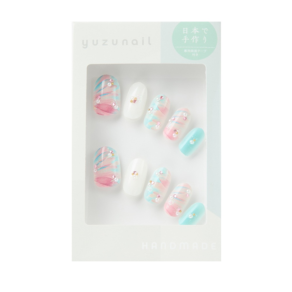 (形)ラウンド(デザイン)春色の花びらネイル。トップコート:ゆずネイル特製のジェルコーティングです。肉厚でぷるんとした質感で、柔らかく着け心地が良いです。ご利用シーン:デート ドレス 結婚式(お呼ばれ・ゲスト) 。