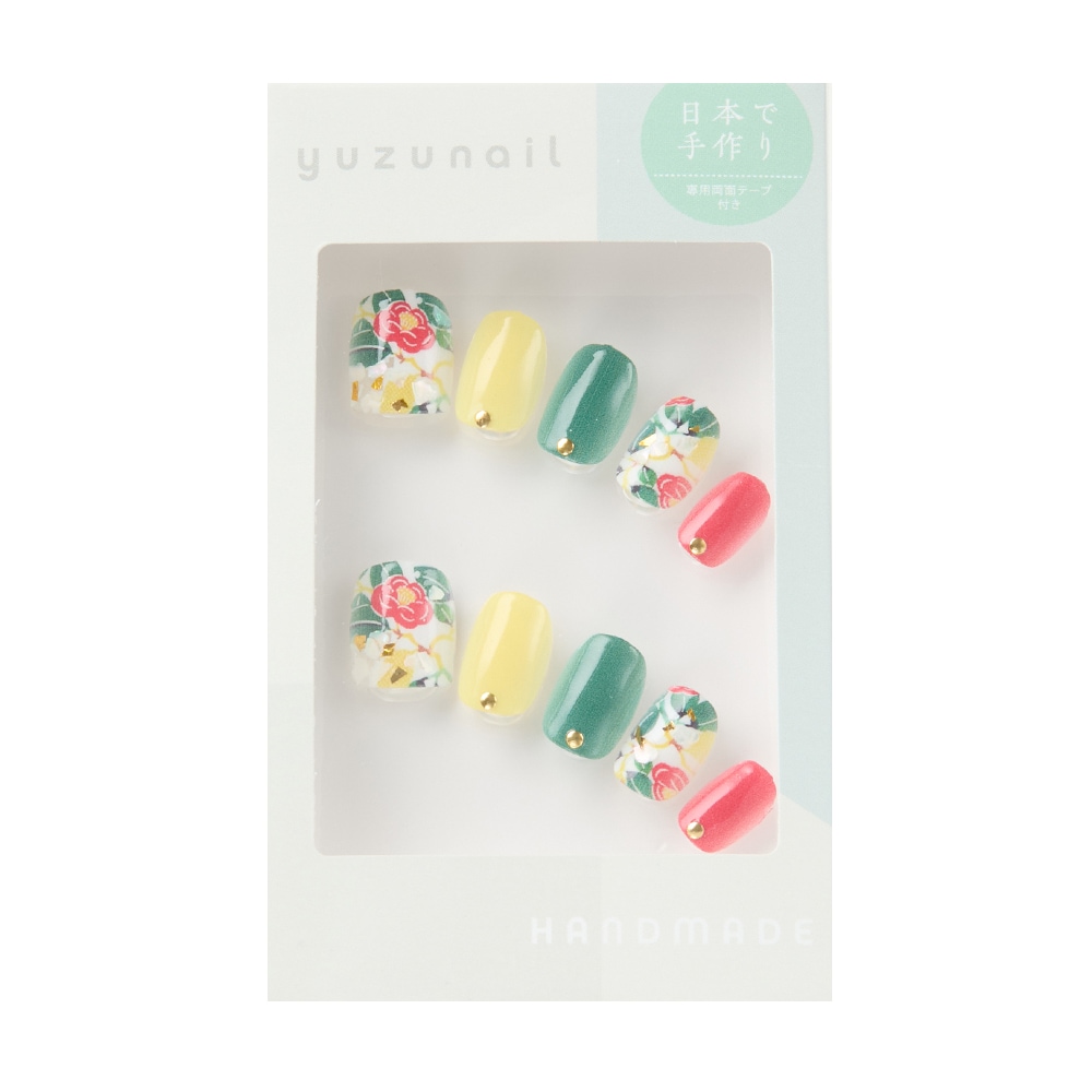 (形)スクエアショート(デザイン)こっくりツバキの和ネイル。トップコート:ゆずネイル特製のジェルコーティングです。肉厚でぷるんとした質感で、柔らかく着け心地が良いです。ご利用シーン:成人式・振袖 。