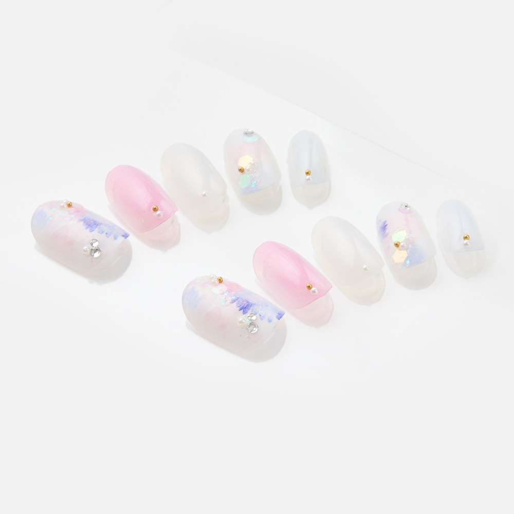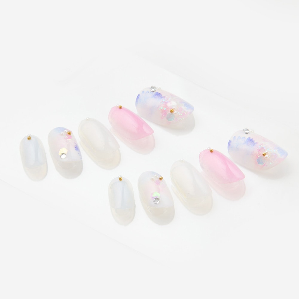 (形)ラウンド(デザイン)ふんわりお花のパールネイル。トップコート:ゆずネイル特製のジェルコーティングです。肉厚でぷるんとした質感で、柔らかく着け心地が良いです。ご利用シーン:デート ドレス 結婚式(お呼ばれ・ゲスト) 浴衣 。