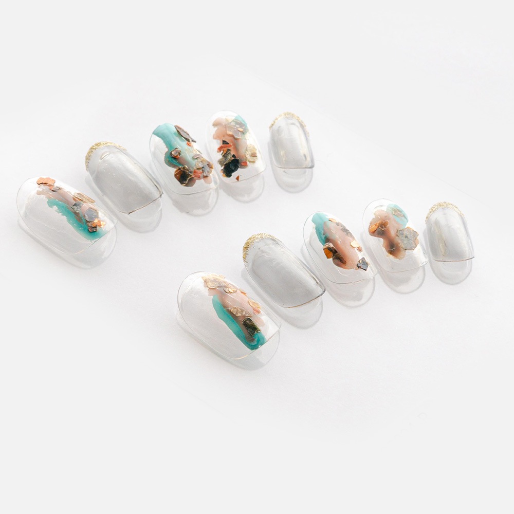 グリーンオーバルとブラウンのマーブル(K04004-Q-C) スクエアショート