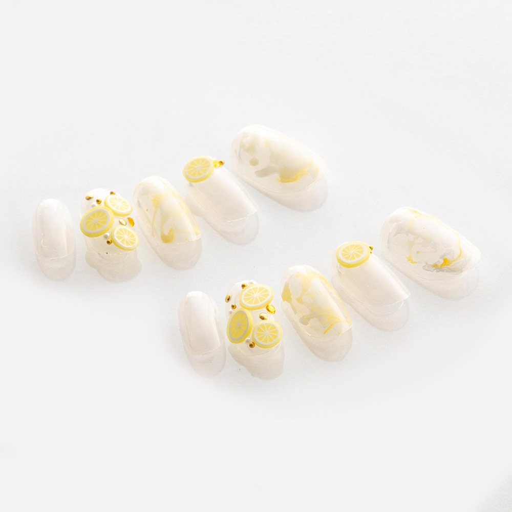(形)ラウンド(デザイン)山口県の名産ゆずきちネイル。トップコート:ゆずネイル特製のジェルコーティングです。肉厚でぷるんとした質感で、柔らかく着け心地が良いです。ご利用シーン:デート 。