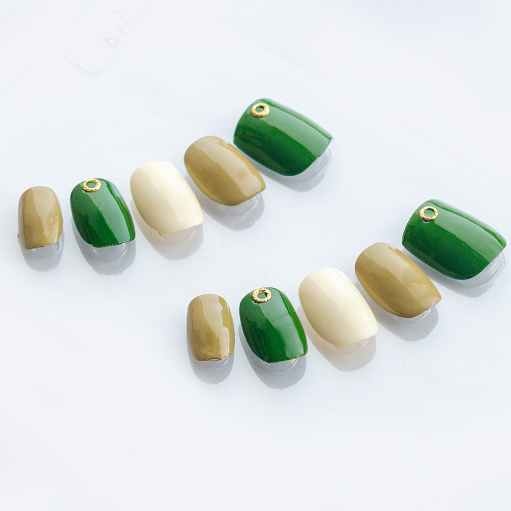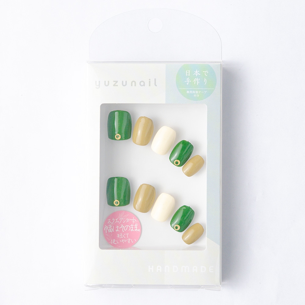 (形)スクエアショート(デザイン)グリーンマルチのシンプルネイルトップコート:ゆずネイル特製のジェルコーティングです。肉厚でぷるんとした質感で、柔らかく着け心地が良いです。ご利用シーン:デート ドレス 成人式・振袖 。