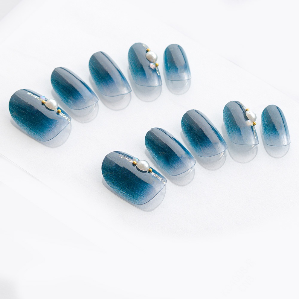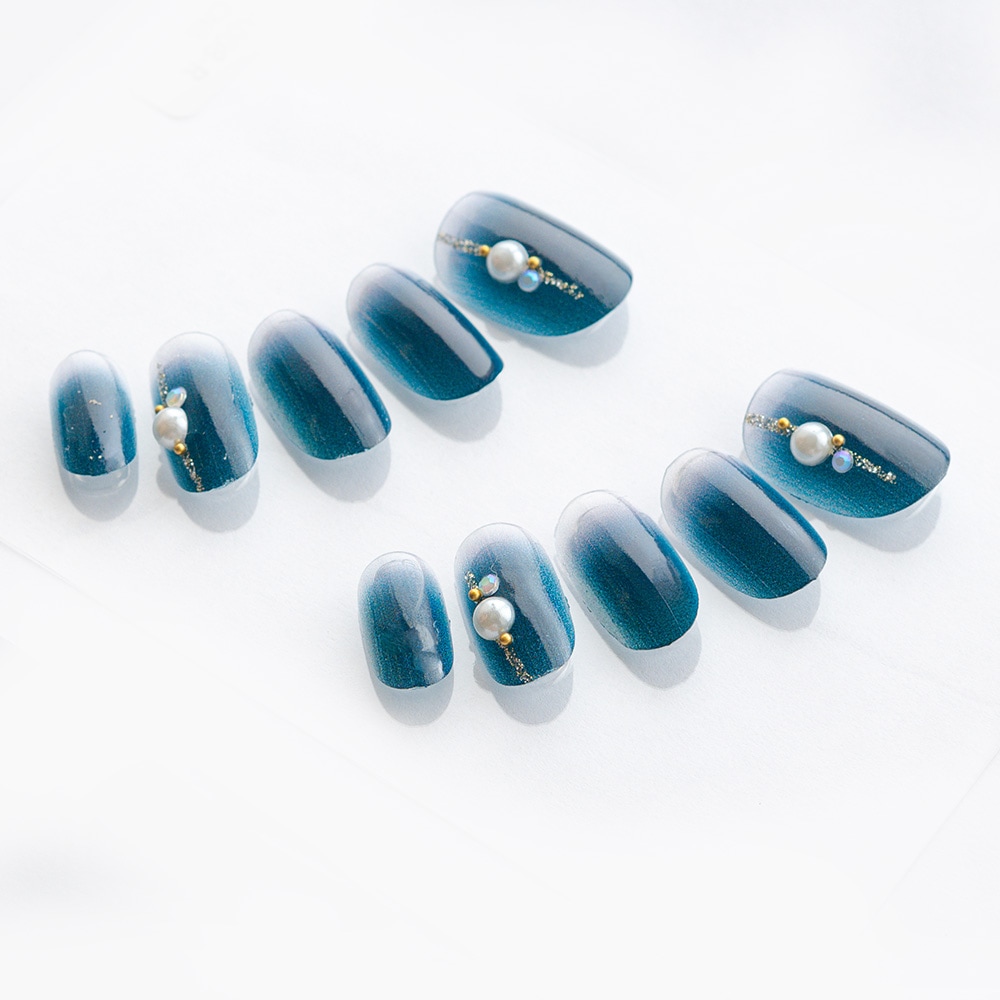 クリアネイビーに大きめパール(K04009-Q-CNB) スクエアショート