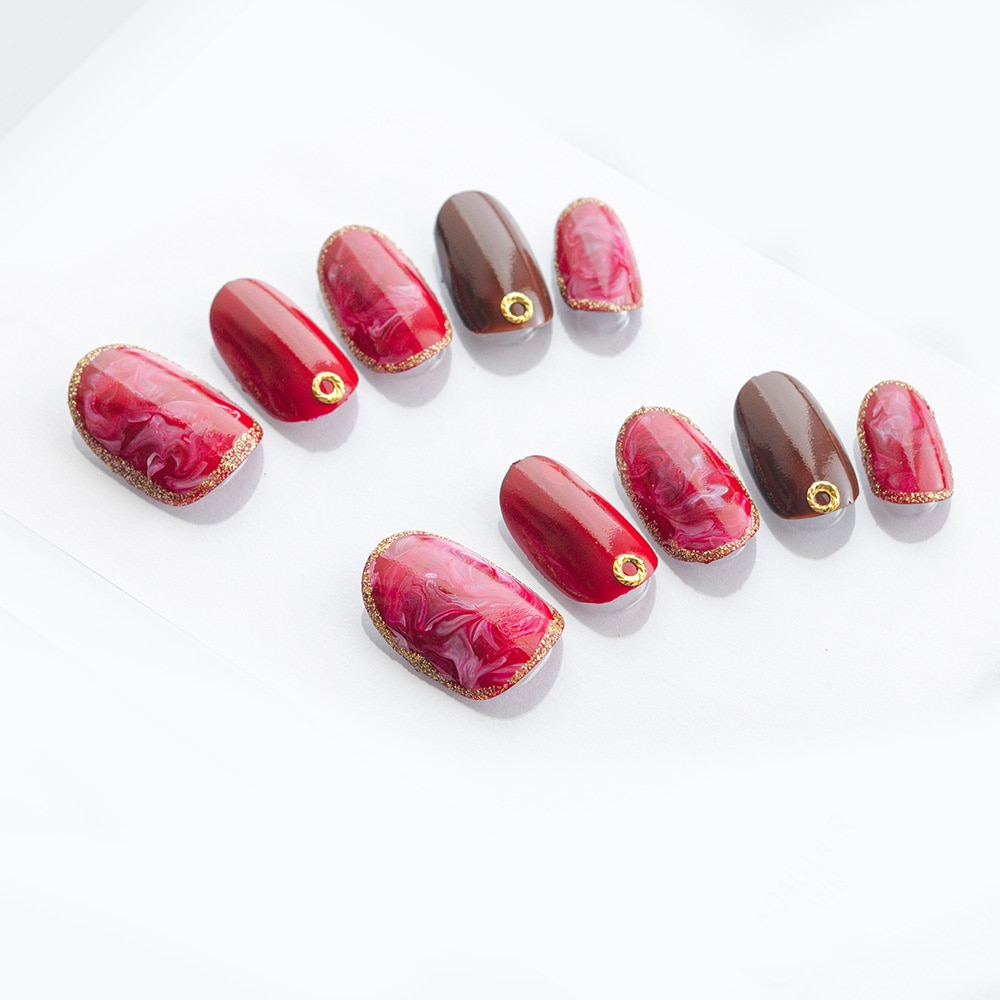 (形)ラウンド(デザイン)大人のディープマーブル。トップコート:ゆずネイル特製のジェルコーティングです。肉厚でぷるんとした質感で、柔らかく着け心地が良いです。ご利用シーン:デート ドレス 結婚式(お呼ばれ・ゲスト) 。