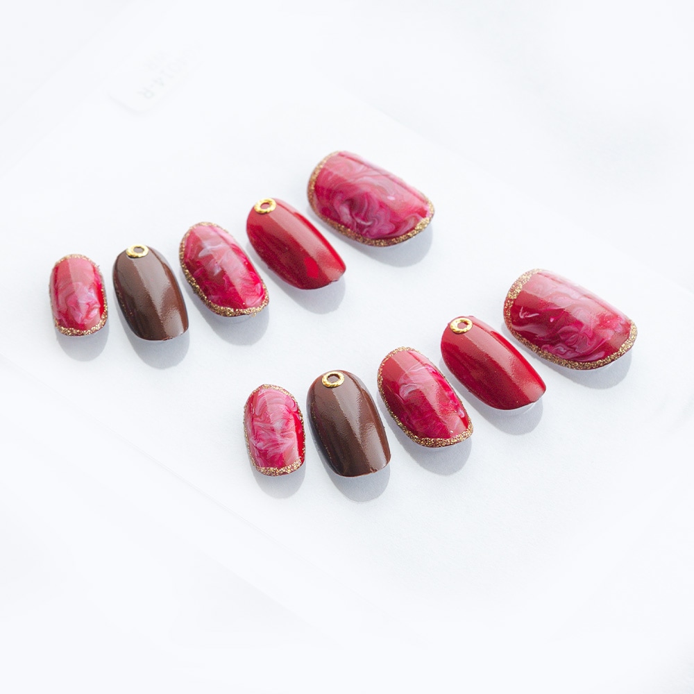 ワインレッドと差し色ブラウンのマーブル(K04014-Q-WR) スクエアショート