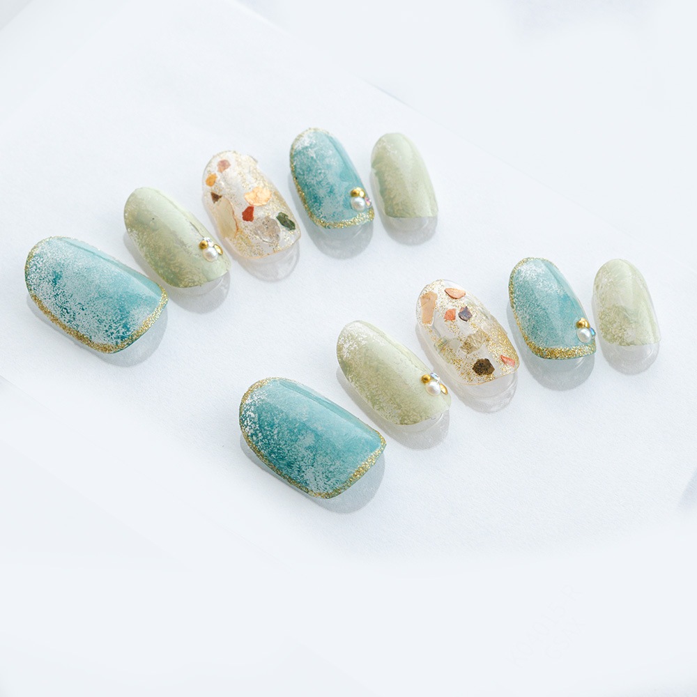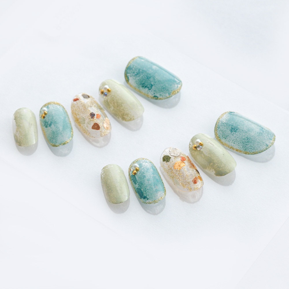 グレージュグラデ。大きなパールとラメライン(K04009-Q-CNGJ) スクエアショート