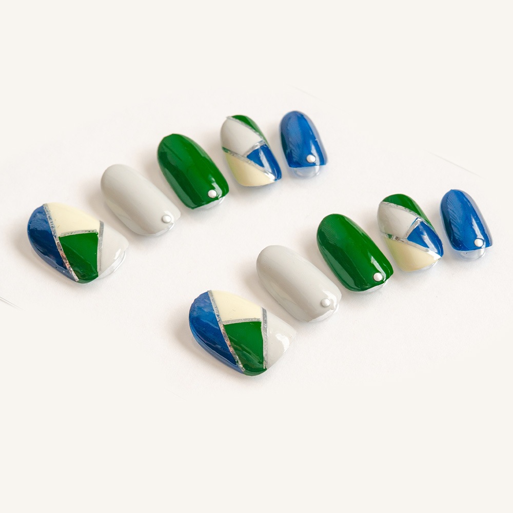 マニッシュラインテープブロッキング。ブルーとグリーン。(K04002-R-C) ラウンド